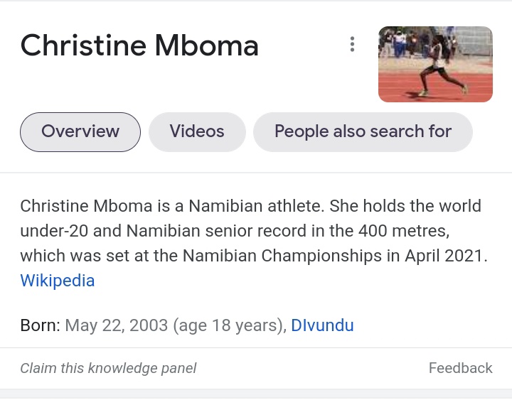 Christine mboma (born 22 may 2003) is a namibian athlete.